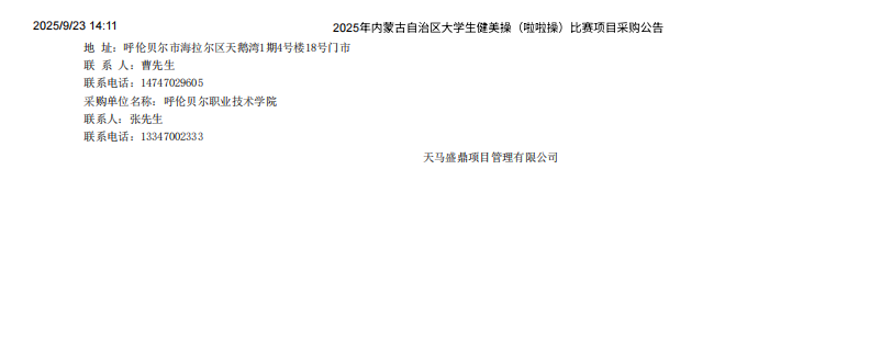 2025年内蒙古自治区大学生健美操(啦啦操)比赛项目采购公告